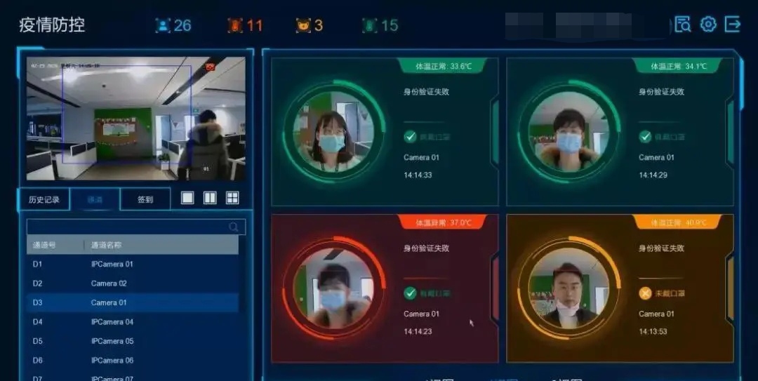 通过在河南工大图书馆、体育训练中心安装人脸识别智慧门卫系统,师生刷脸无感进出大门,同时经过人证比对识别人员身份信息,将陌生人及黑名单人员阻拦在门外;外来人员可通过访客预约功能在线登记,授权成功后,刷脸通行;另外系统还具备测温模式,可实时记录通行人员体温情况,实现高效精准的人员管控和体温筛查,保证校园公共场所的安全秩序和防疫安全。