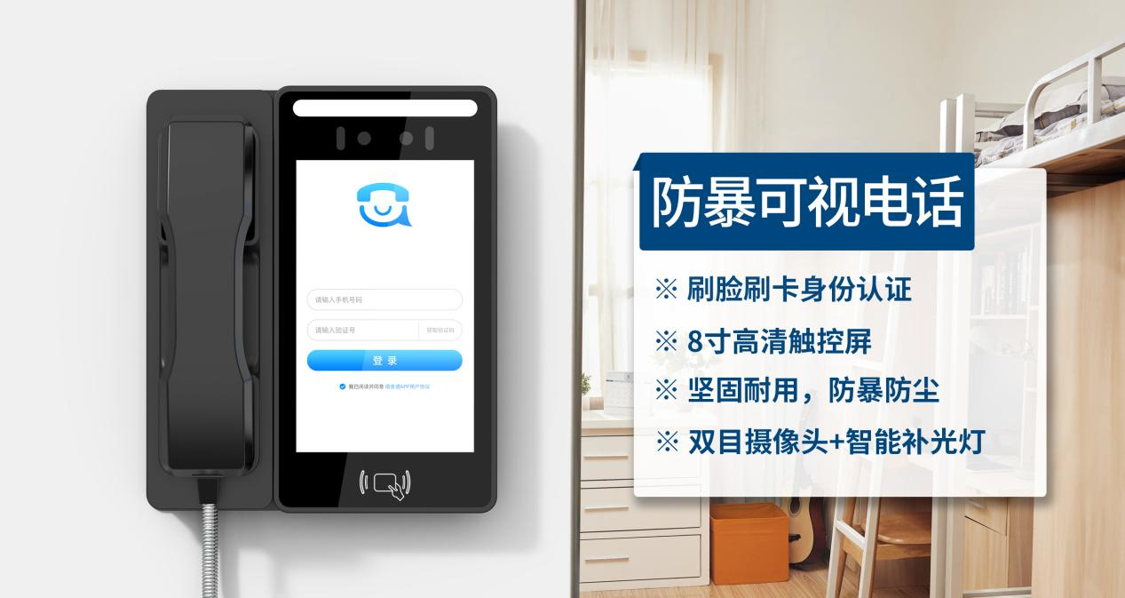 伟邦科技自主研发智能可视电话,旨在进一步提升家校高沟通效率,通过部署在教学公共区或宿舍区,学生可通过人脸识别或刷卡认证快速与父母发起视频通话,语音通话,在线留言等服务,进一步提升家校沟通的效率和质量,助力学校推动现有公用电话设施的硬件升级,提高办学品质,推进家校共育。