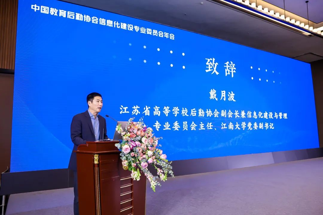 在中国教育后勤协会信息化建设专业委员会2022年年会上,戴月波首先致辞,他对本次大会的召开表示祝贺,他指出,信息化正日益成为创新驱动发展的先导力量,着力推动后勤信息化进程对加快教育行业全面数字转型和智能升级,助力高质量教育体系建设具有非常重要的支撑作用,是后勤圆满完成管理育人、服务育人职责的重要保障。会上,他提出三点工作思路。