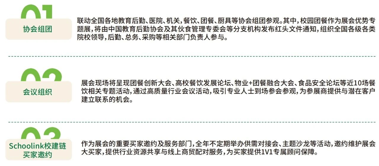 数字校园团餐暨智慧食堂主题展,打造学校餐饮食堂一站式全链平台。汇聚从食材、预制菜、餐饮供应链、健康食品、数字团餐服务、品牌档口、食堂空间设计规划、智能化设施设备、健康餐具、食堂管理、食安系统等上下游企业。