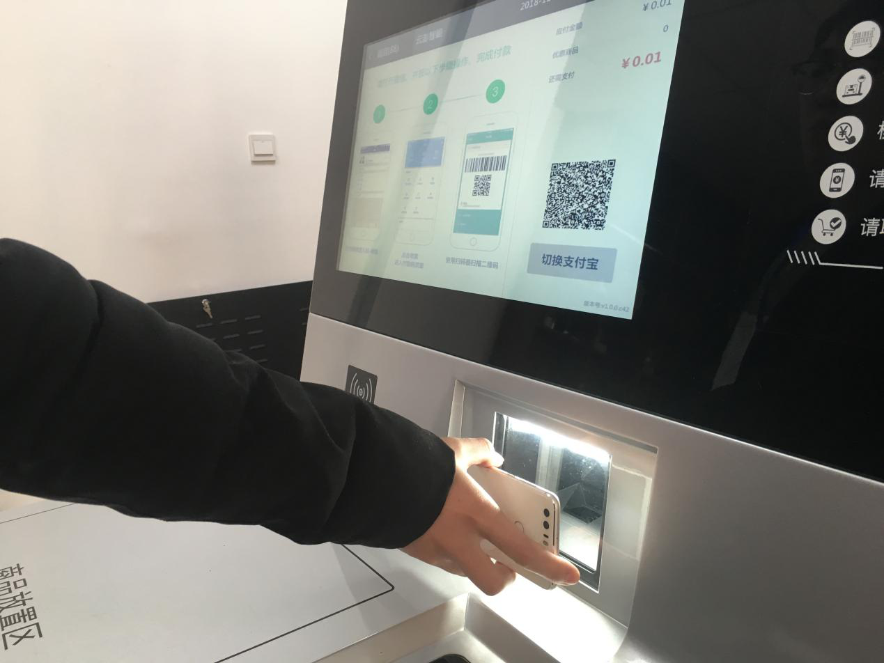 3.放于自助收银台,自助扫码