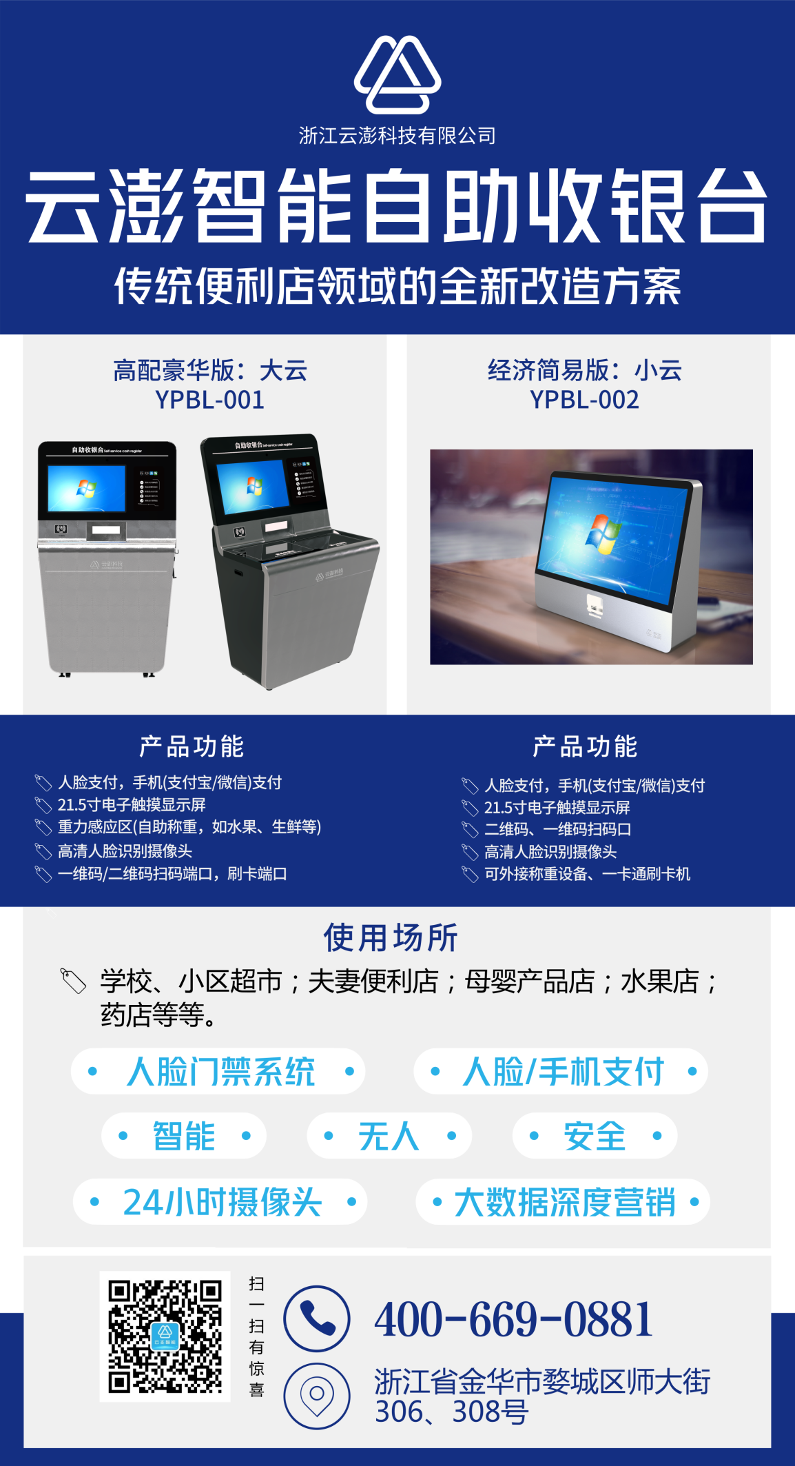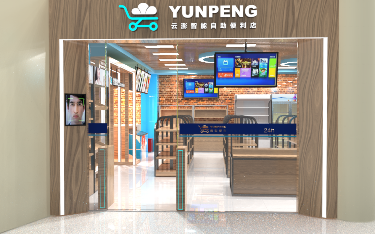 云澎智能自助便利店,基于“云澎智能自助收银台”、“云澎人脸门禁系统”而实现。