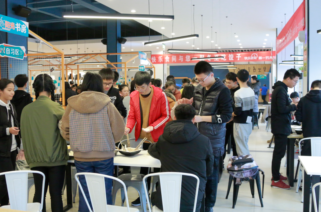 快乐食间打破传统思维,在食堂功能外为空间重新赋能,除了提供高品质餐饮服务之外,还为师生开设了鲜果店、便利店、文创店等,满足大学生休闲、文创、社交等多种需要,让校园生活更加便利!