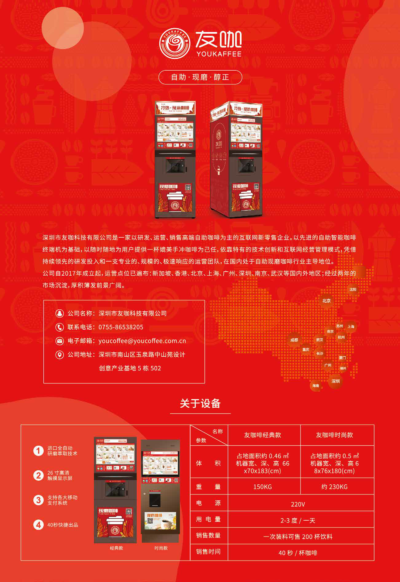 深圳市友咖啡科技有限公司成立于2017 年,是国内知名智能售货机运营商-友宝在线的控股子公司。