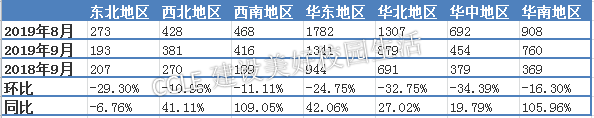 综合9月全国招标采购信息量地区统计分析图(如上图所示):西北地区环比下降10.98%,同比增长41.11%;华东地区环比下降24.75%,同比增长42.06%;华南地区环比下降16.30%,同比增长105.96%;华北地区环比下降32.75%,同比增长27.02%;华中地区环比下降34.39%,同比增长19.79%;东北地区环比下降29.30%,同比下降6.76%;西南地区环比下降11.11%,同比增长109.05%。