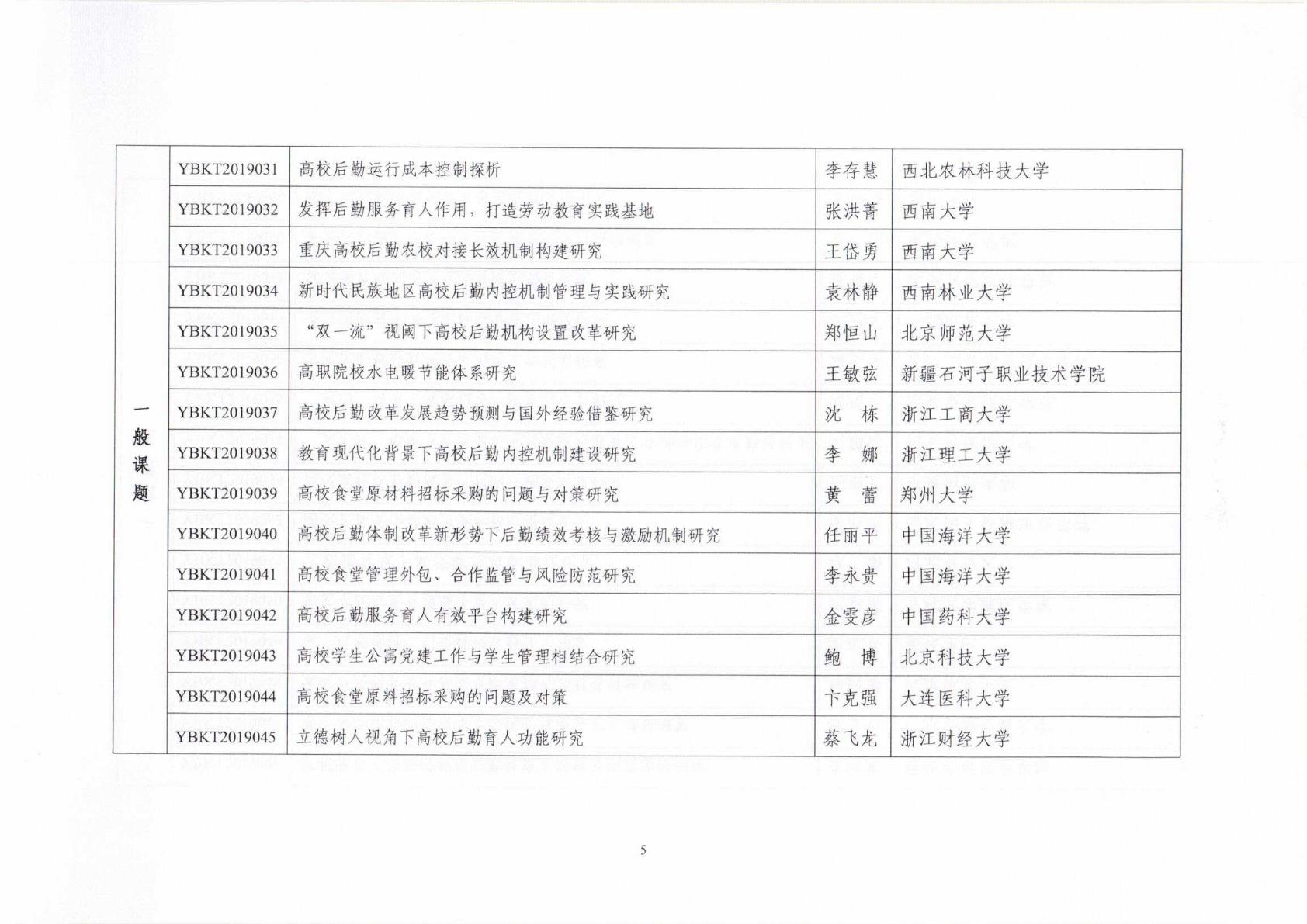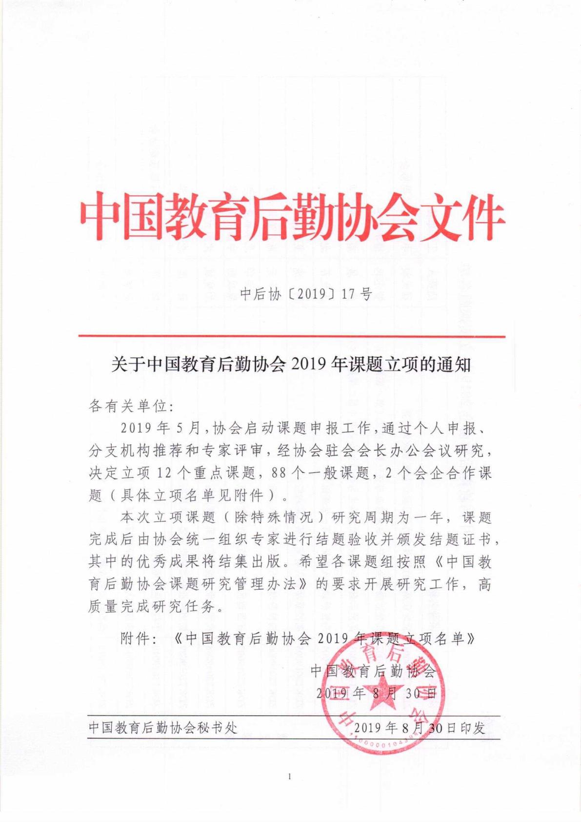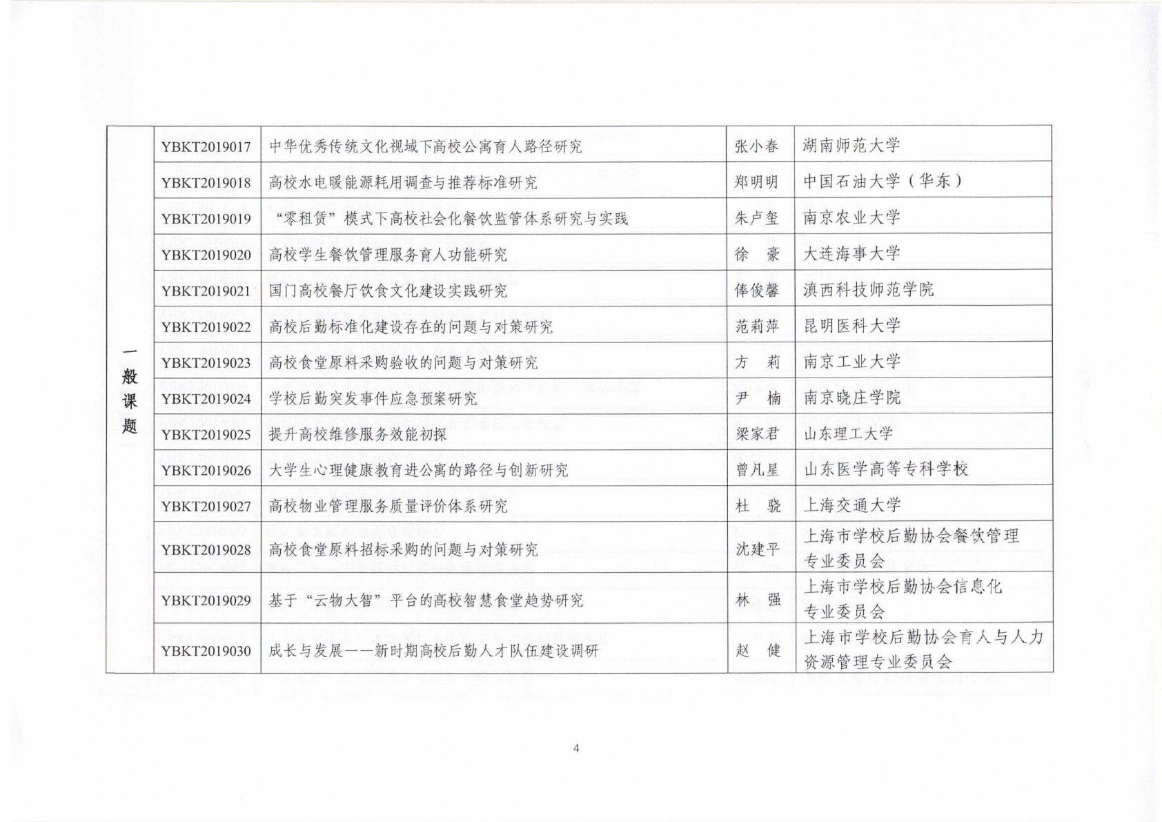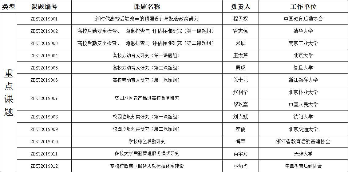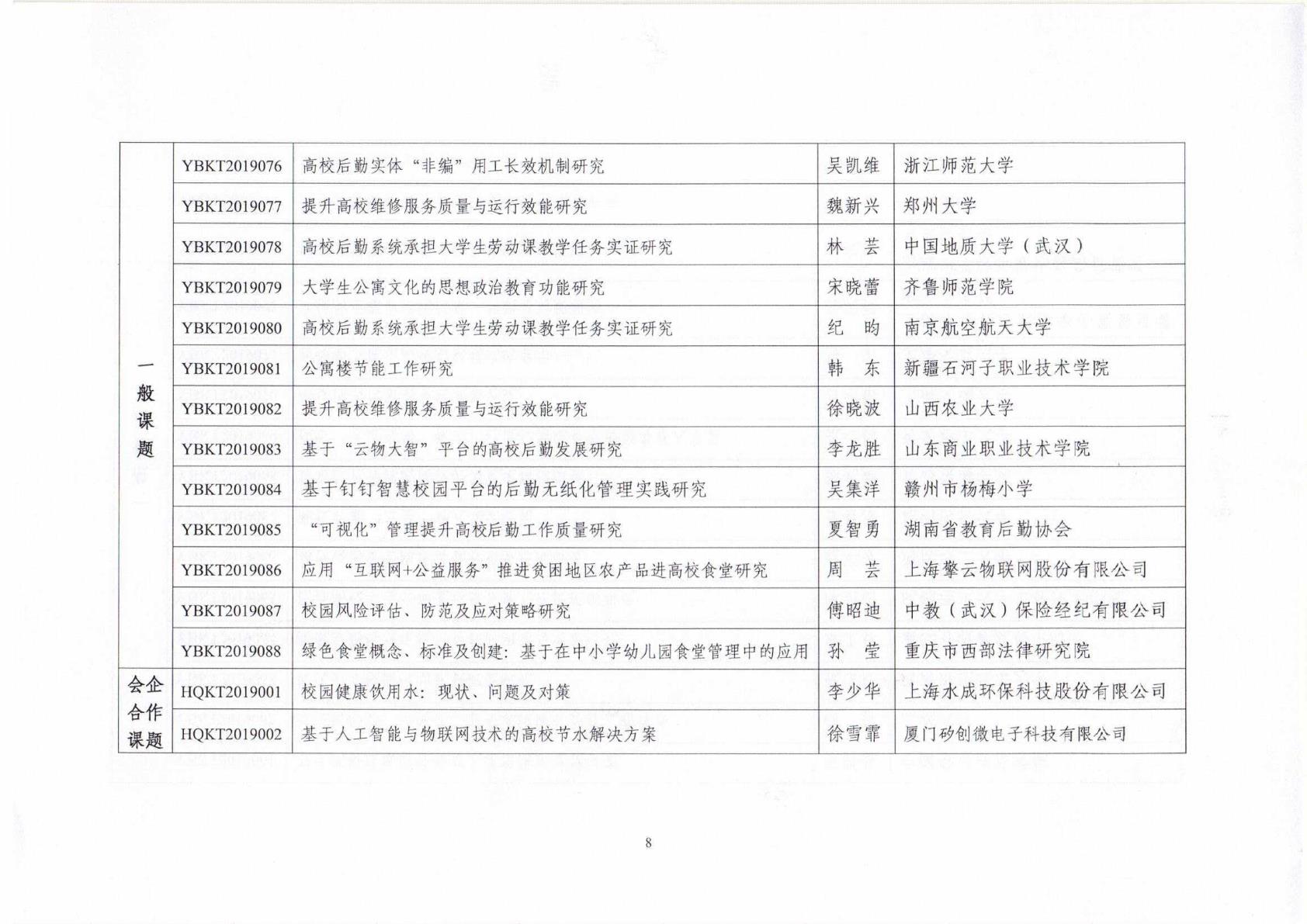 中国教育后勤协会2019年立项课题名单
