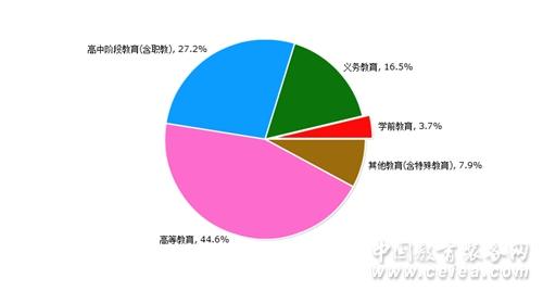 12月中标信息所属领域统计图,如图10所示:学前教育占比为3.7%;义务教育占比为16.5%;高中阶段教育(含职教)占比为27.2%;高等教育占比为44.6%;其他教育(含特殊教育)占比为7.9%。
