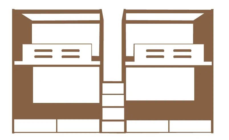 宿舍宽度有限,但是爬梯宽度尽量做宽,使用者上下时就更舒适安全。旋转楼梯的设计,是通过研究使用者上下楼梯的习惯,达到在有限空间增加爬梯宽度的效果。