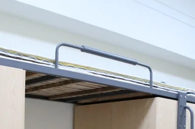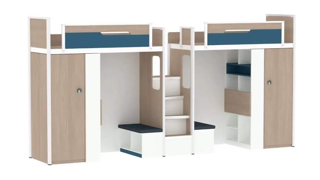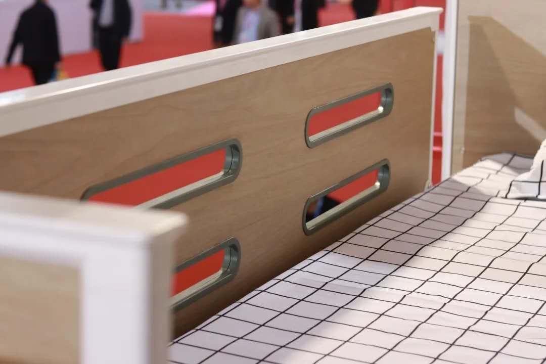 参考泳池扶手设计,Mix Space 系列公寓床拥有上下双层扶手,保证使用者上下床时站在每一级爬梯上都能有最佳的扶手位置。