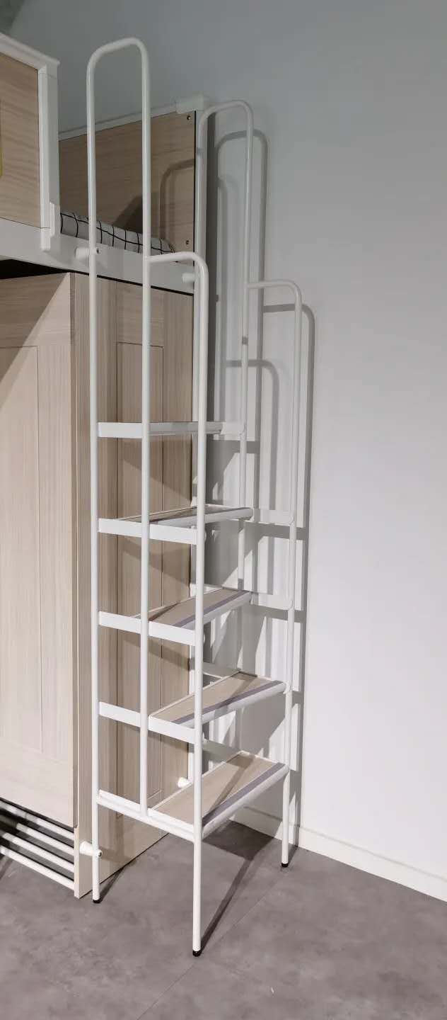 以前的公寓床爬梯,一根细细的钢管又冰冷又硌脚。使用者上下床总是要小心翼翼的,怕一不小心就滑下来。