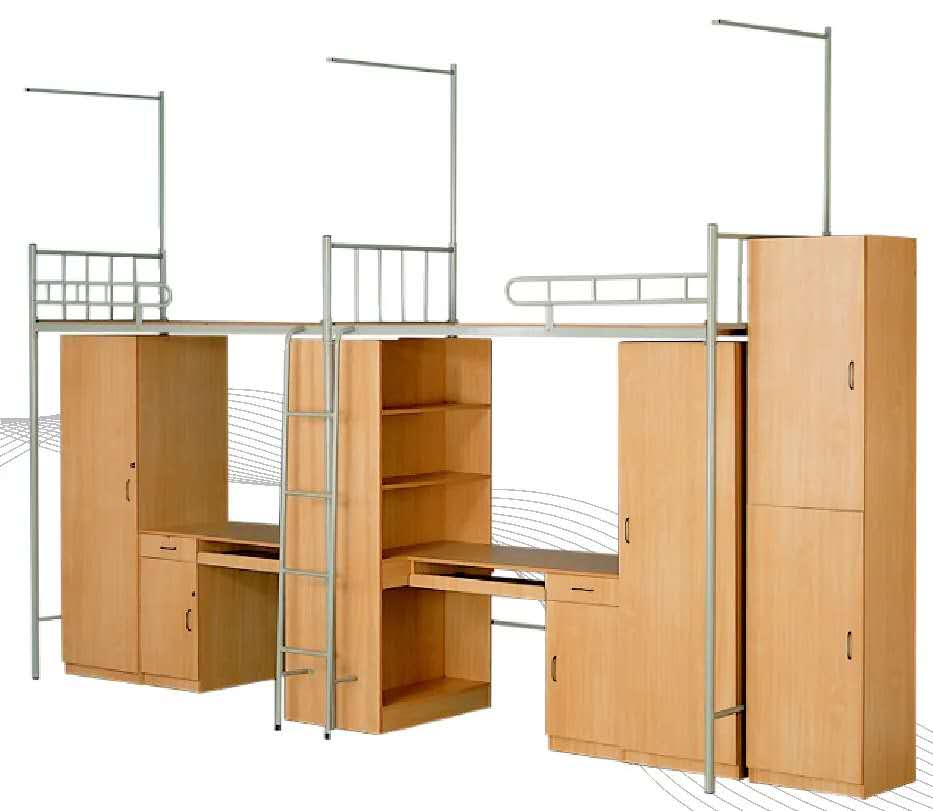 最初,在上下铺的公寓床形式中,下铺的床下会用来放鞋子或者脸盆,公寓的其他地方可能会为每个人安排一个小柜子用来存放物品。