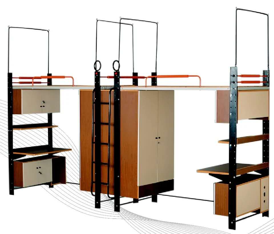 后来,在六人间形式中,有的一张上铺下面可能会设计成一排桌子,有的则设计成衣柜。四人间的到来,让每个使用者都有了独立的作息空间,上床下桌柜的概念也固定了很多年。