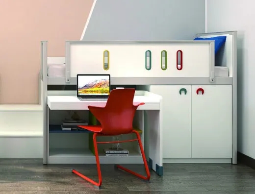 从最初的一张床到上下铺,从上下铺到上铺下桌,从上床下桌到增加衣柜书架鞋架,再到现在的个性化定制空间。休息空间与睡眠空间的区分,床体高度的分层,收纳空间的再定义,学习空间的比重变化......如今的公寓家具早已从最初的单薄款型蜕变为集安全、美观、实用于一体的新形象。