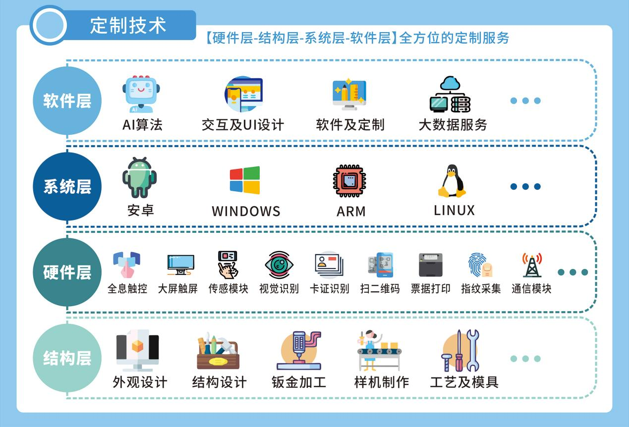 伟邦科技利用丰富的经验与技术,可为企业解决目前面临以及未来可能遇到的一切痛点,定制打造完整、完善、安全、可靠的智能硬件产品。