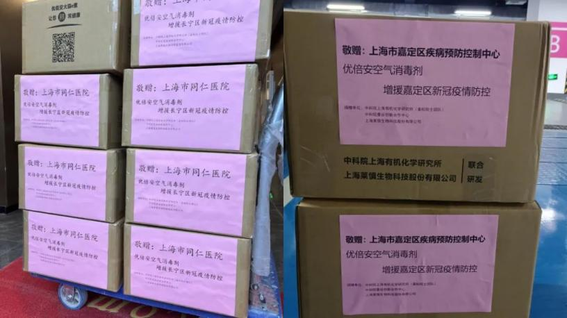 莱慎生物捐赠上海市嘉定区疾控中心10箱优倍安空气消毒剂以及配套的空气消毒器,支援嘉定区新冠疫情防控工作,保障嘉定疾控工作人员抗疫期间集中办公环境的安全。