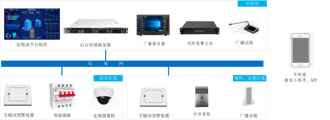 1.针对宿舍、厕所、楼梯等欺凌高发区域,为学生实现报警求救(无死角防御,帮孩子“发声”);