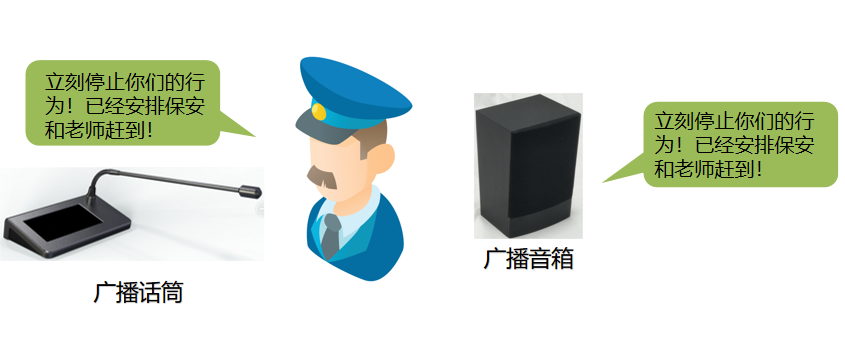 联动广播:对于突发的紧急事件,管理人员可以借助广播设备先一步发出警告威慑,及时制止冲突的加剧。