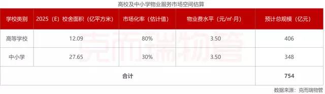基于上述分析,估计2025年我国仅高等教育及中小学物业服务市场规模至少可达754亿元。由于当前我国高校后勤社会化水平较低,全国仅有约36%的学校真正实现后勤社会化。未来,随着学校后勤社会化进程的加速,越来越多的学校物业服务将面向社会公开招标,学校物管潜在的市场空间巨大,千亿规模指日可待。