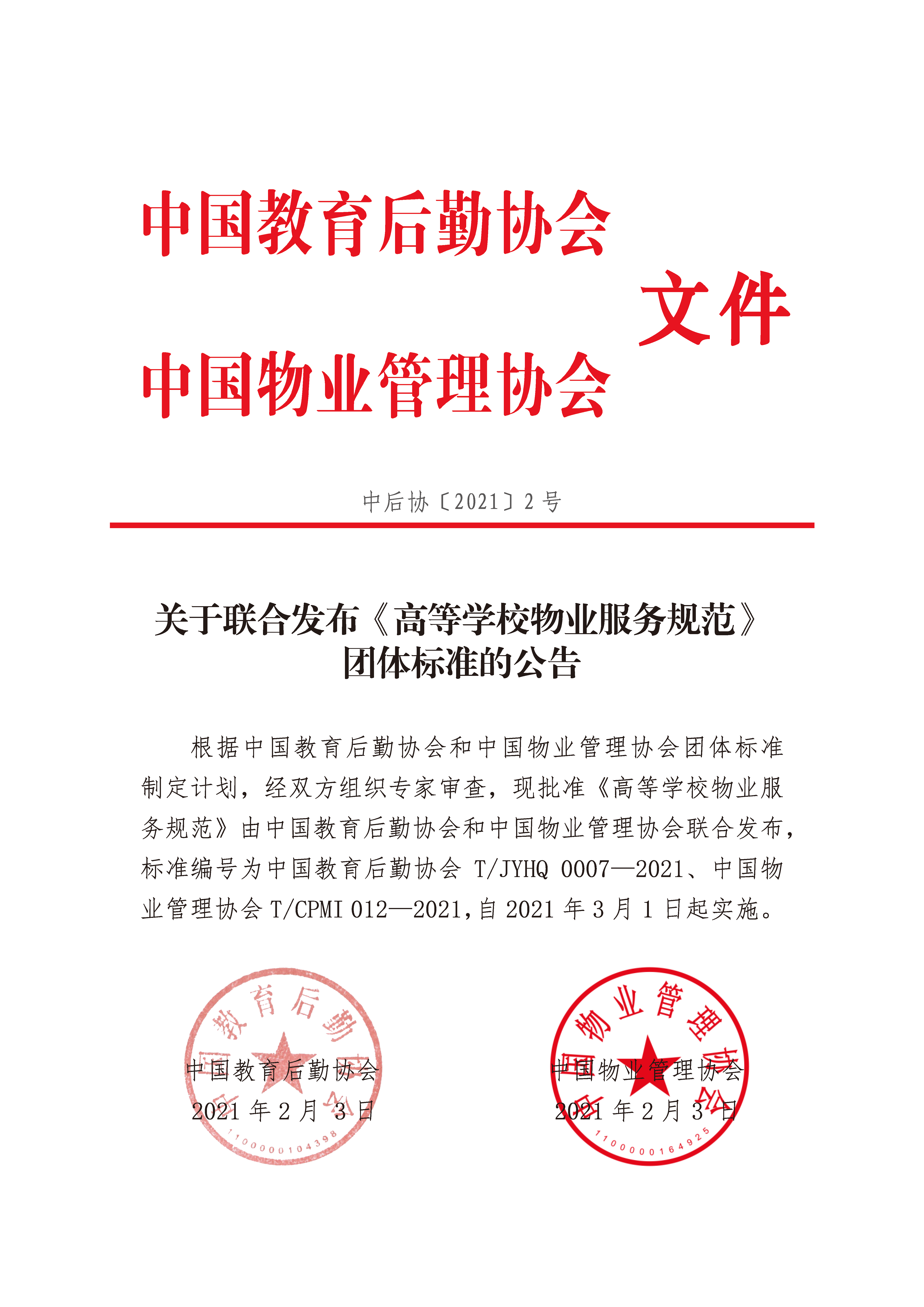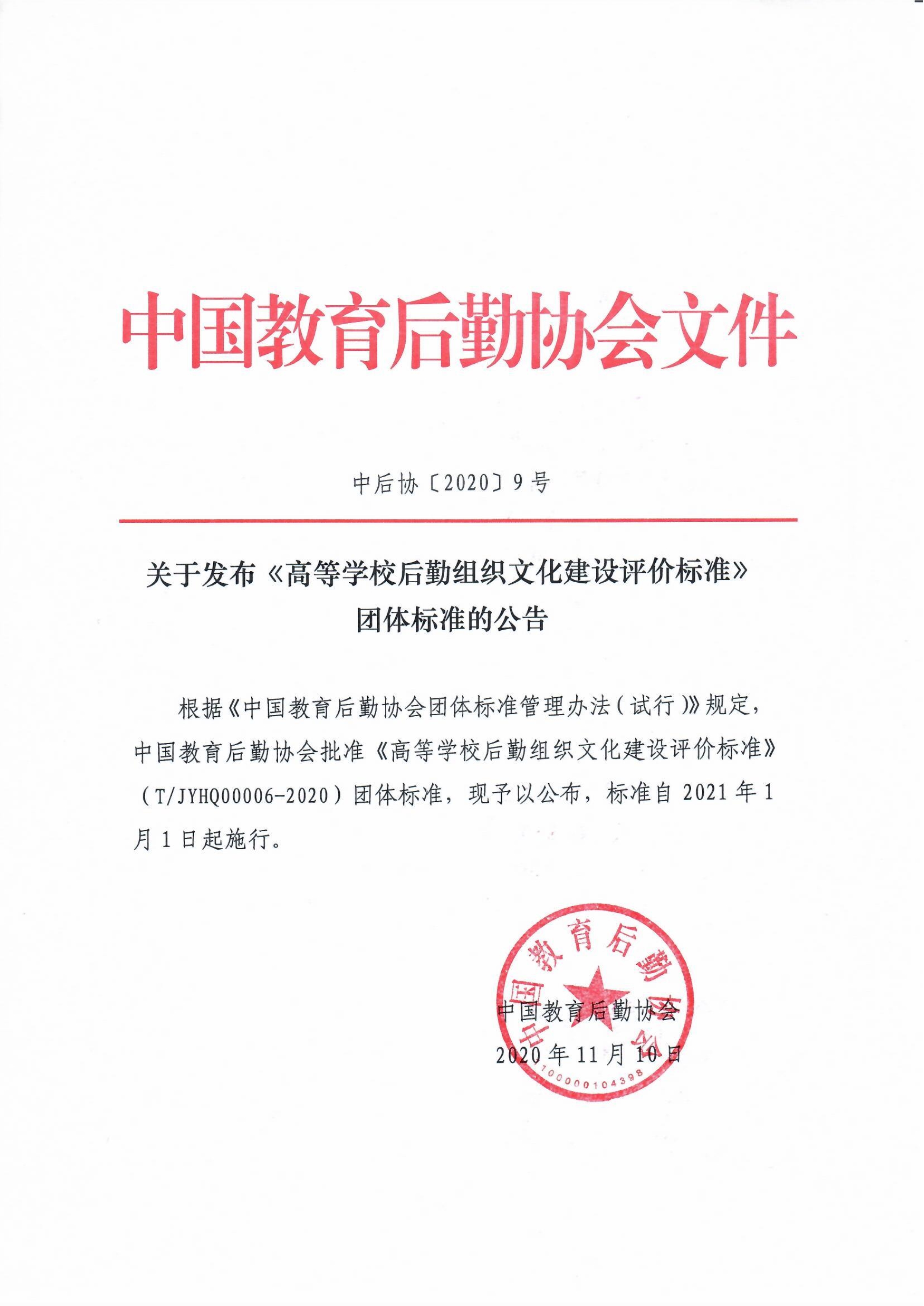 《高等学校物业服务规范》团体标准 《高等学校后勤组织文化建设评价标准》团体标准