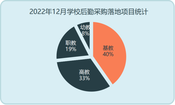 当月基础教育领域后勤采购需求较大,采购份额占总量的40%,有296个项目落地,百万级采购项目98个,千万级采购项目9个,更有4.7亿元大单重磅落地。