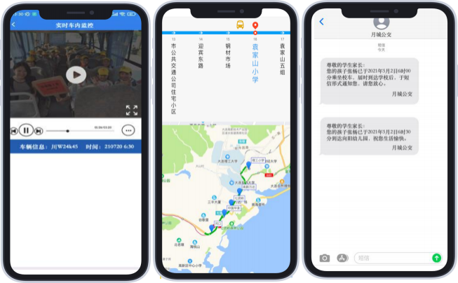 ● 学生上、下车均实时向家长发送短信提醒;内嵌GPS模块,实时跟踪每辆车的位置、行驶轨迹、行驶时间等内容,保障学生乘车安全。