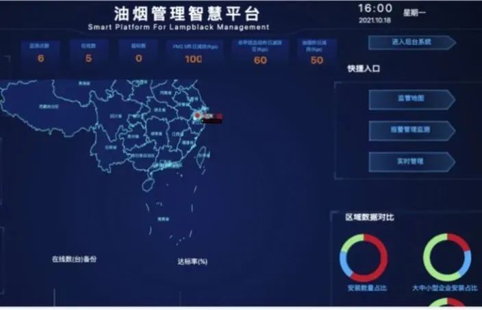 拥有24小时不间断监测油烟、排放远程预警、清洗天数统计等综合数据的处理应用,为监管部门实时掌握餐饮企业油烟排放情况而设计开发的信息系统。
