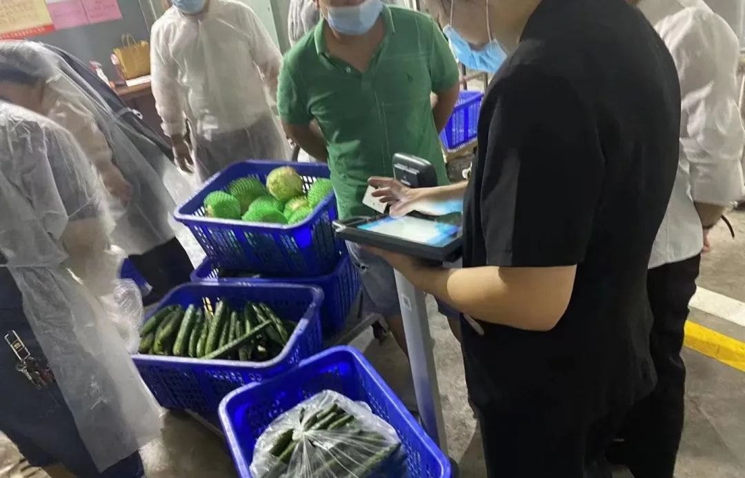 第二天早上,验收部门会按照单据,对供应商送达的食材进行验收和入库作业。验收按照开袋、入筐、核验品质、拍照、计量、保存等规范的作业流程和动作,将数据生成并上传到云服务器,这样,完成一个单品食材的验收,实现品名、重量、照片、时间四位一体的绑定。