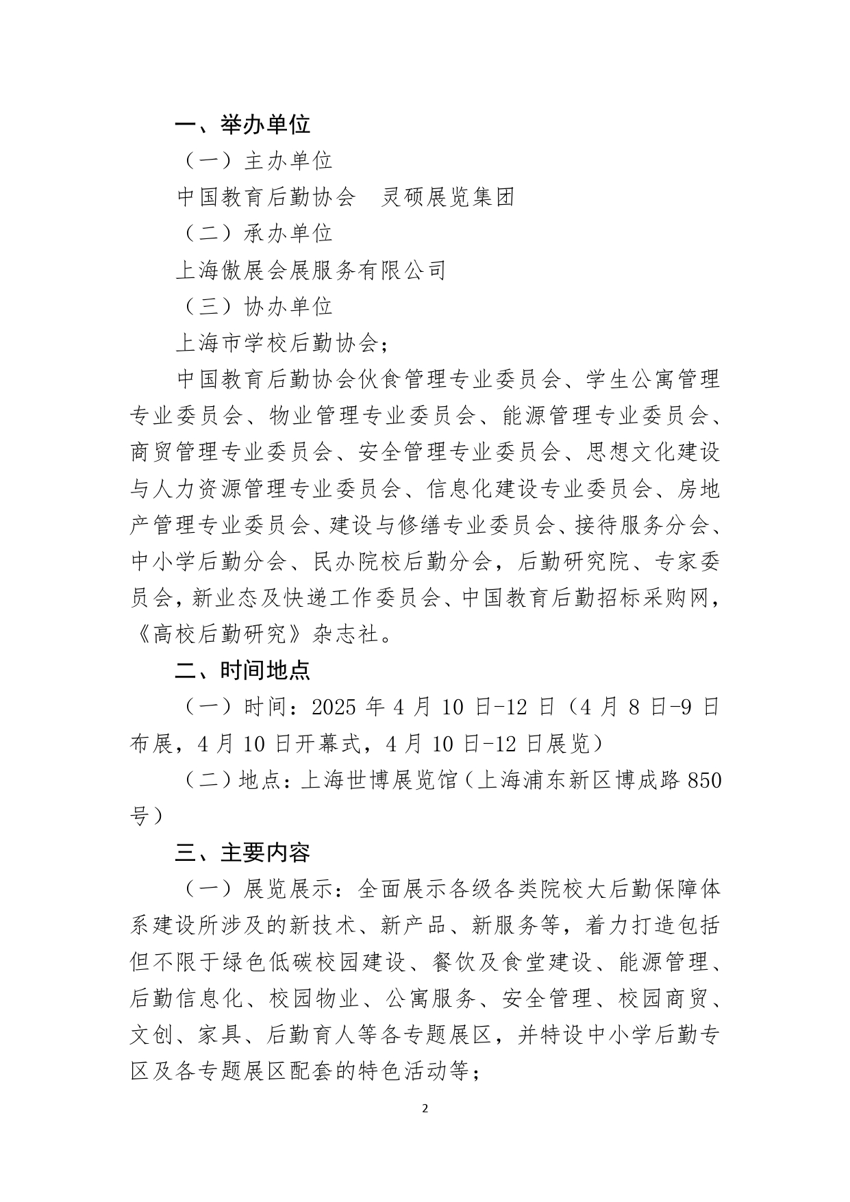 (一)展览展示:全面展示各级各类院校大后勤保障体系建设所涉及的新技术、新产品、新服务等,着力打造包括但不限于绿色低碳校园建设、餐饮及食堂建设、能源管理、后勤信息化、校园物业、公寓服务、安全管理、校园商贸、文创、家具、后勤育人等各专题展区,并特设中小学后勤专区及各专题展区配套的特色活动等;
