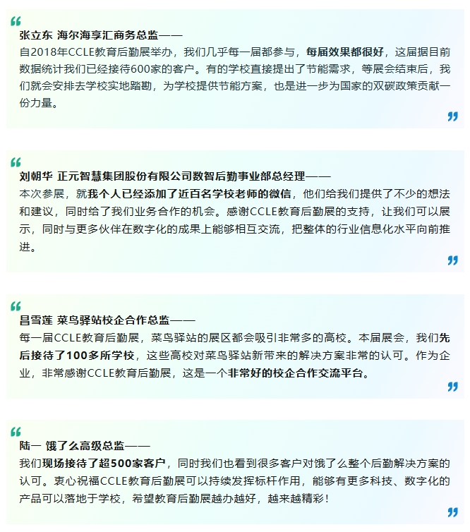 这些企业涵盖大后勤全场景,他们不仅带来前沿的产品技术与创新解决方案,更以实践力量共同驱动学校后勤智慧升级与高质量发展新格局。