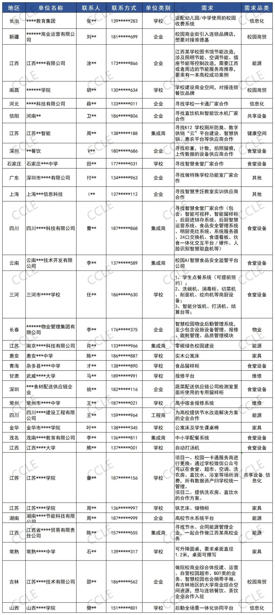 7月,我们共计收到78条需求,其中28所高校、19所中小学、31家企业,需求覆盖智慧食堂设备、食材供应、校园商业服务、能源管理、校园信息化管理、环保家具等多个领域。