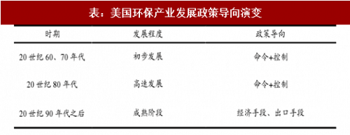 表:美国环保产业发展政策导向演变(来源:观研天下)