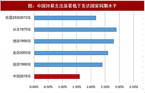 图:中国环保支出显著低于发达国家同期水平(来源:观研天下)