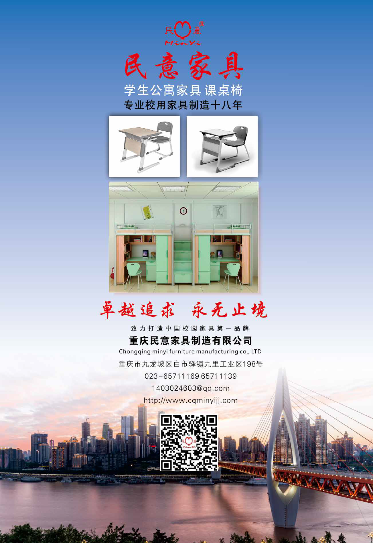 本公司是一家集研发、设计、制造及销售于一体的学生公寓组合家具、课桌椅生产企业。现有员工300余人,其中拥有有高学历专业人员占职工总数30%;经验丰富的一线工人占80%以上。厂区占地70亩,建筑面积5万平方米。拥有先进的自动化生产设备实现数控化生产作业。